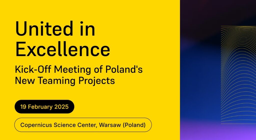 On 19 February 2025, the official kick-off ceremony for three Teaming for Excellence projects, funded by the European Union within the Horizon Europe framework programme for research and innovation will take place at the Copernicus Science Centre in Warsaw, Poland’s leading scientific outreach hub. The event symbolically coincides with Polish Science Day which is celebrated annually on the birthday of Nicolaus Copernicus to honour achievements of Polish scientists and inspire future generations to pursue innovation and discovery.